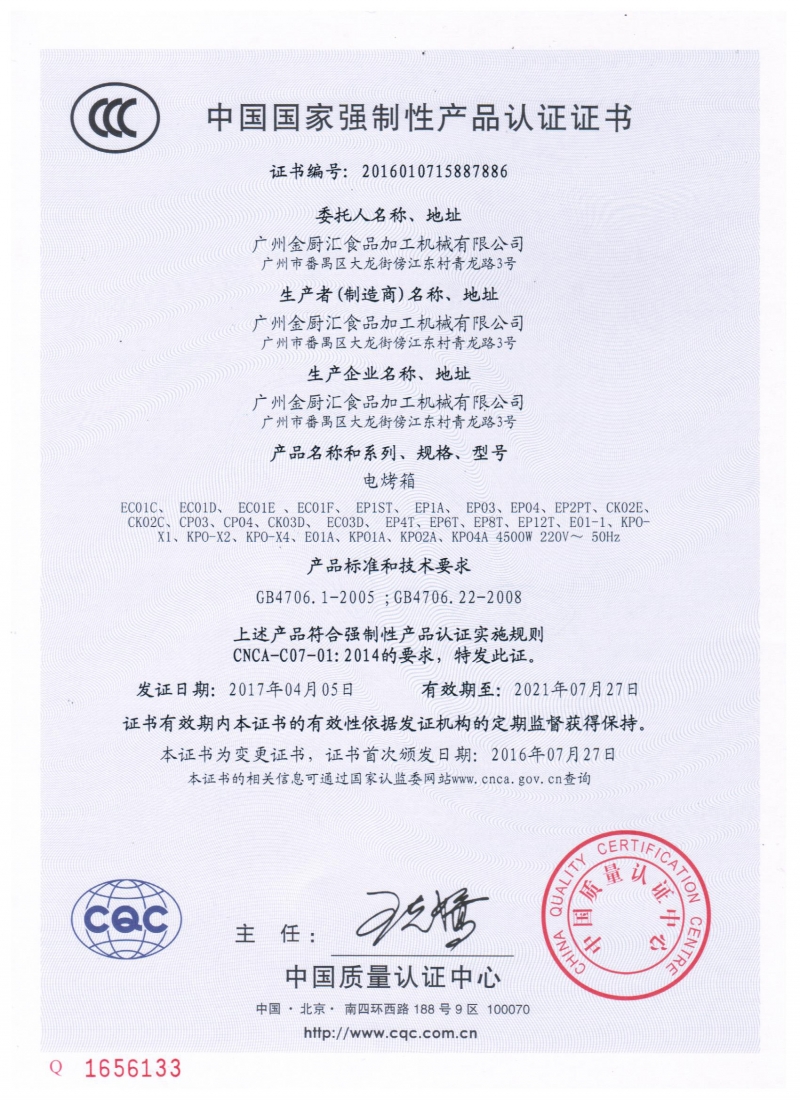 | Authority: | China Quality Certification Center | From: | 2017-04-05 |